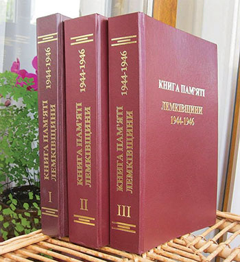 “The Memory Books of Lemkivshchyna 1944-1946” (Knyha Pamiati Lemkivsh-chyny 1944-1946), authored by Dr. Yaroslava Galyk and published with the support of the Lemko Research Foundation in the U.S.A. (LRF) and LRF’s president, Andriy Khomyk, contain the names of those Lemkos who were deported to Ukraine between 1944 and 1946. They are listed according to their original villages of residence. The records contain their full names (with patronyms), year of birth, family relationships within households, and the Ukrainian oblast to which they were resettled. Dr. Galyk obtained these important lists from the original resettlement documents presently located in the State Archives of the Lviv Oblast.