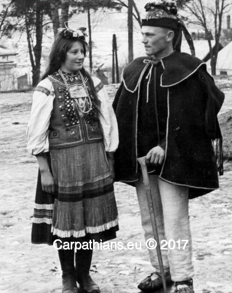 Святковий одяг складався з гуньки або сердака, який був коротший; спереду сердак мав петельки з вовняного шнурка, ззаду внизу мав три розтини і шви, обшиті білим шнурком. Носили також своєрідний плащ темно-бронзового кольору з оздобленим каптуром — чуху (чуганя). Каптур (пелерина) був оздоблений висячими френзлями; він був довгий, обшитий білим шнурком і розшитий чорними нитками.